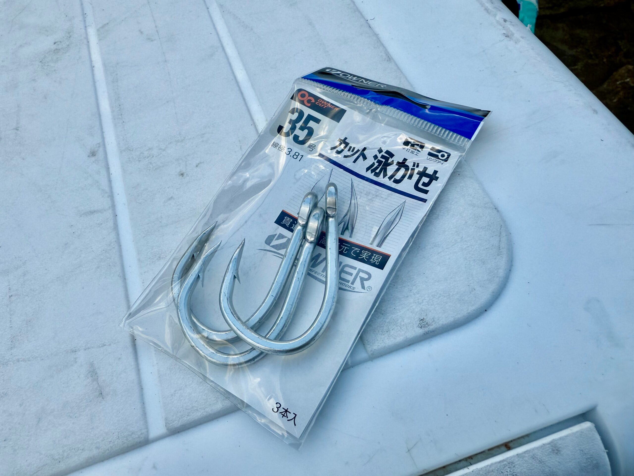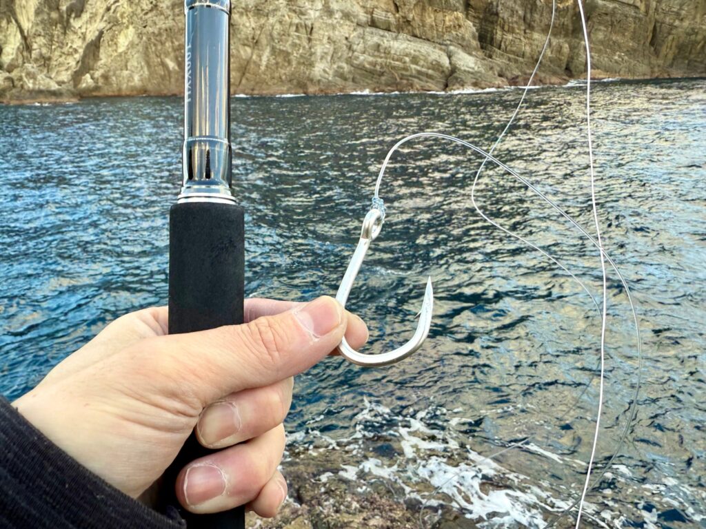 難しい仕掛けなどは必要ありません。40号ぐらいのハリスとテキトーな針があれば釣りが楽しめます。ハリス兼リーダーって感じなので、リーダーに直接針を結んでも良いと思います。ハリス40号にしている理由は万が一根掛かりしても外しやすくするためです。化け物がいる海域であれば、バイトリーダーに100号フロロなど入れるといいかもしれません。針だけあれば釣りができるので荷物が増えないのもメリットの1つです。